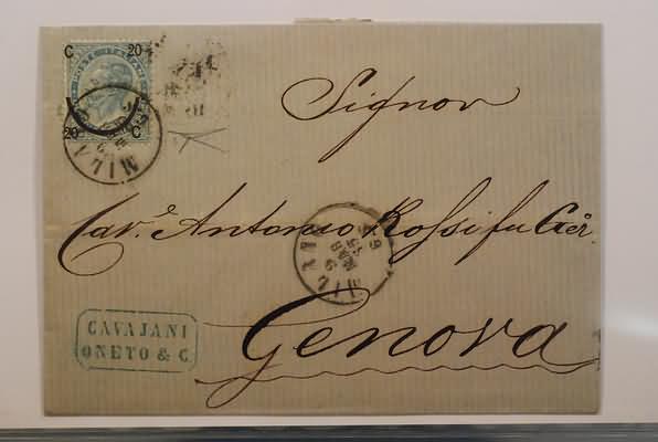 REGNO D'ITALIA VARIETA' - 1865, 20 su 15 c. III tipo (25) con soprastampa sensibilmente spostata a sinistra su lettera da Milano per Genova, 9/3/65. (Bottacchi).(LETTERA)