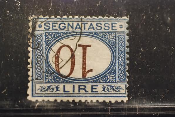 REGNO D'ITALIA VARIETA' - 1874, Segnatasse, 10 lire azzurro e bruno con le cifre capovolte (14b).(USATO)
