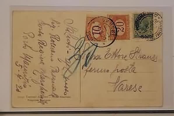 REGNO D'ITALIA VARIETA' - 1920, Segnatasse 10 c. cifra capovolta (21a) + 20 c. (22) applicati a Varese su cartolina da Porto Maurizio insufficientemente affrancata con 5 c. (81), 6/8/20.(LETTERA)