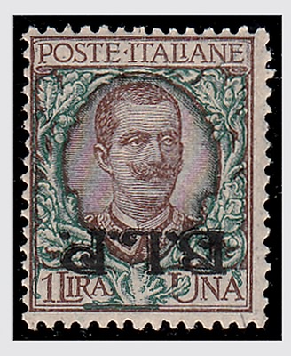 REGNO D'ITALIA VARIETA' - 1922, BLP, 1 lira soprastampa litografica II tipo, capovolta (12b). (G. Bolaffi. Cert. Vignati).(GOMMA INTEGRA)
