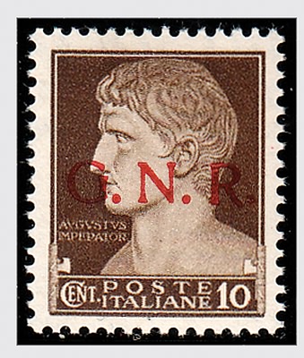 REPUBBLICA SOCIALE ITALIANA - 1944, GNR Verona 10 c. soprastampa rossa...