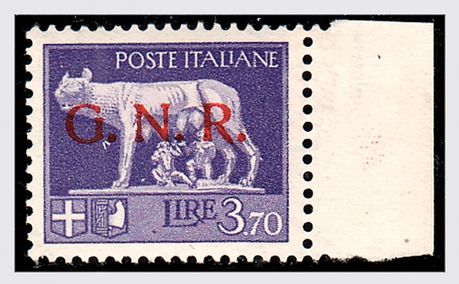 REPUBBLICA SOCIALE ITALIANA - 1944, GNR Verona, 3,70 lire soprastampa rossa...