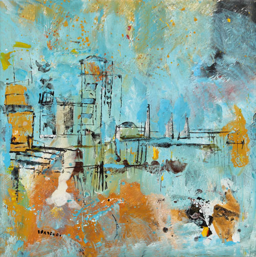 ELVIO ZORZENON Aquileia 1939 Paesaggio tecnica mista su tela cm. 70x70, firma in basso a sinistra, dichiarazione d'autenticità dell'artista su foto.