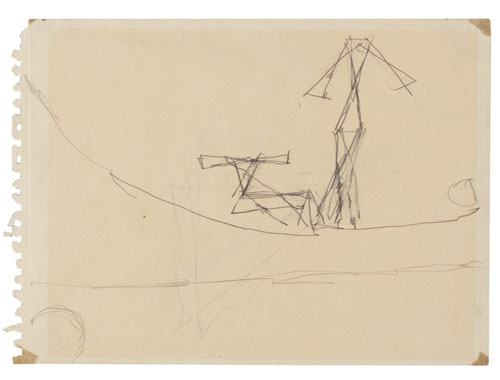 OSVALDO LICINI Monte Vidon Corrado (Ap) 22/03/1894 - Monte Vidon Corrado (Ap) 11/09/1958 Senza titolo matita bifronte su carta di blocco note cm. 20,5x28, opera non firmata, dichiarazione di provenienza della Collezione Caterina Hellstrom Riccitelli (Celi Hellstrom Caterina) su due foto.