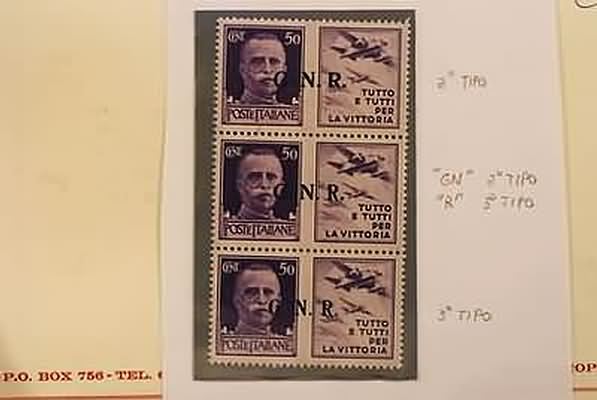 REPUBBLICA SOCIALE ITALIANA - 1943, Propaganda di guerra, GNR Brescia 50 c. (23) il trittico composto da II tipo, "GN" II e "R" III tipo, III tipo (23/I, 23/Ia, 23/II). (Cert. Raybaudi, Cert. Bottacchi).(GOMMA INTEGRA)