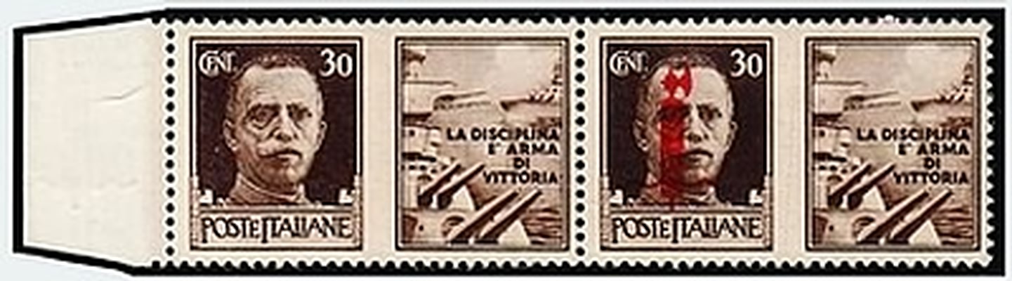 REPUBBLICA SOCIALE ITALIANA - 1944, Propaganda di guerra, 30 c. coppia orizzontale di cui uno senza soprastampa (29c) con il fascetto impresso al verso del bordo di foglio. (G. Oliva, Cert. Bottacchi).(GOMMA INTEGRA)