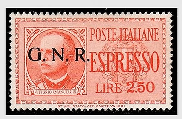 REPUBBLICA SOCIALE ITALIANA - 1943, Espressi, GNR Brescia I 2,50 lire con...