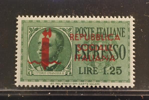 REPUBBLICA SOCIALE ITALIANA - 1944, Espressi, 1,25 l. verde con soprastampa...