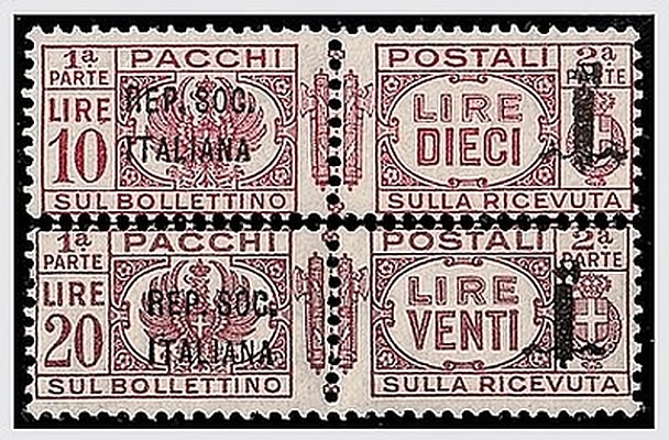 REPUBBLICA SOCIALE ITALIANA - 1944, Pacchi postali, 12 valori cpl. "fascetto"...