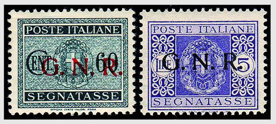 Lotto 3239 | REPUBBLICA SOCIALE ITALIANA - 1944, GNR Verona, segnatasse, 13 valori cpl....
