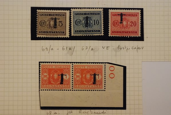 REPUBBLICA SOCIALE ITALIANA - 1944, Segnatasse, 5 valori con soprastampa capovolta (60a, 61a, 62a, 68a coppia).(GOMMA INTEGRA)