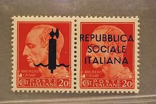 REPUBBLICA SOCIALE ITALIANA - 1944, Saggi, 20 c. + 20 c. , coppia orizzontale...