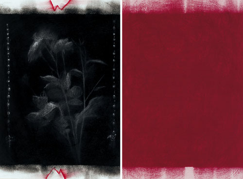 OMAR GALLIANI Montecchio Emilia (Re) 30/10/1954 Kumarakom, 2004 (dittico) tecnica mista su 2 fogli di carta cm. 56x38 cadauno, totale cm. 56x76, firma, titolo e anno al retro della carta di sinistra