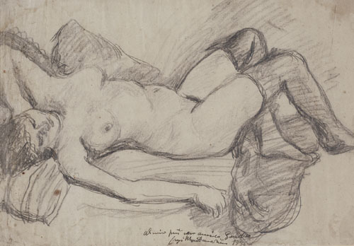 LUIGI MONTANARINI Firenze 22/07/1906 - Roma 09/01/1998 Nudo femminile disteso, 1938 matita su carta cm. 36x52, firma, anno e dedica dell'artista ad personam, in basso al centro