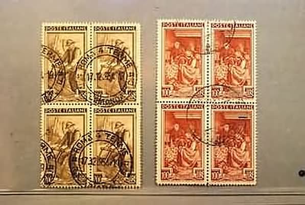 REPUBBLICA ITALIANA - 1950, Italia al lavoro, i 2 alti valori (651/52) in quartine.(USATO)