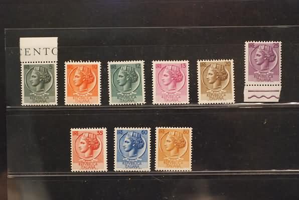 REPUBBLICA ITALIANA - 1953-54, Siracusana, 9 valori cpl. ruota...