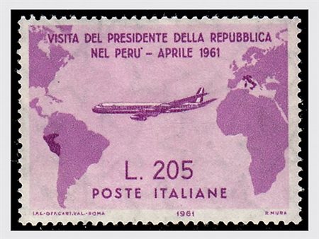 REPUBBLICA ITALIANA - 1961, Gronchi, 205 lire lilla rosa (921). (Cert....