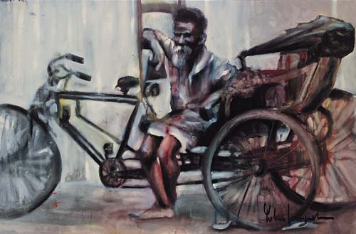 FABIO GIAMPIETRO Milano 1974 Calcutta, 2002 tecnica mista su tela cm. 100x150, firma in basso a destra,firma, titolo, anno ed etichetta della Transit Artist Management al retro, opera senza cornice