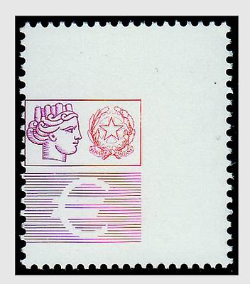 REPUBBLICA ITALIANA - 2002, Alti valori "euro" , varietà non catalogata con la sola stampa del giallo e del rosso spostata al punto che è visibile unicamente la testina, lo stemma e il simbolo dell'euro. Noti pochi pezzi. (Cert. R. Diena)(GOMMA INTEGRA)