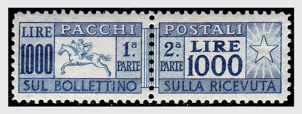 REPUBBLICA ITALIANA - 1954, Pacchi postali, 1.000 lire "cavallino" (81/I)....