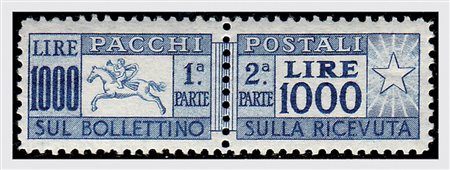 REPUBBLICA ITALIANA - 1954, Pacchi postali, 1.000 lire "cavallino" (81/I). (Cert. Caffaz).(GOMMA INTEGRA)