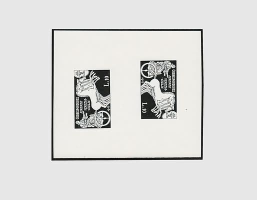 SERVIZI PRIVATI AUTORIZZATI - 1945, S.A.B.E., Prova in nero del 10 lire (14) in coppia tete-beche su cartoncino patinato, non dentellato e non gommato. Di pregio. (Cert. Raybaudi).(SENZA GOMMA)