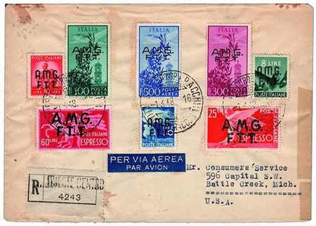 TRIESTE ZONA A - 1948, Posta aerea, Campidoglio 3 valori (13/15) + alcuni complementari, su aerogramma per New York, FDC.(LETTERA)