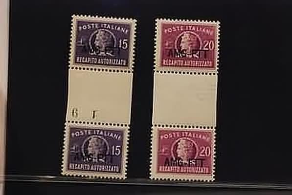 TRIESTE ZONA A - 1949-52, Recapito autorizzato 2 valori cpl. (4/5) in coppie...