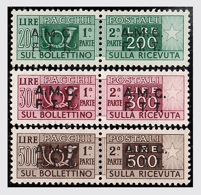 TRIESTE ZONA A - 1948, Pacchi postali, soprastampa su due righe, 12 valori...