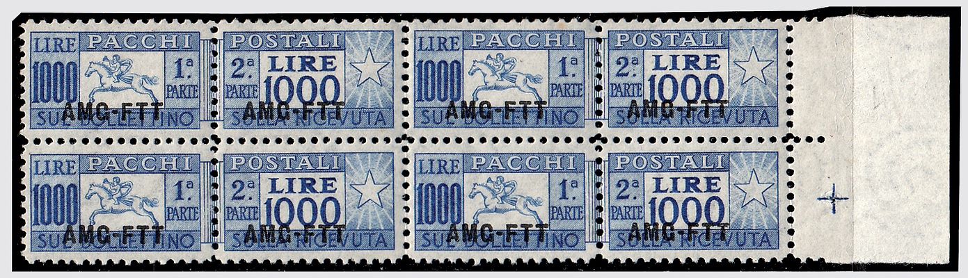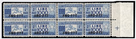 TRIESTE ZONA A - 1954, Pacchi postali, 1.000 lire "cavallino" (26) blocco di...