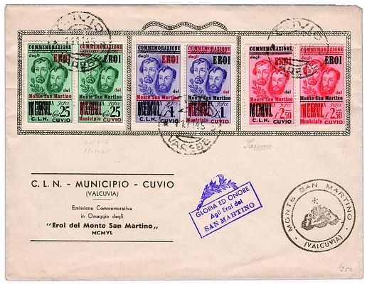 EMISSIONI LOCALI E C.L.N. - 1945, CUVIO, F.lli Bandiera, 3 valori cpl. in...
