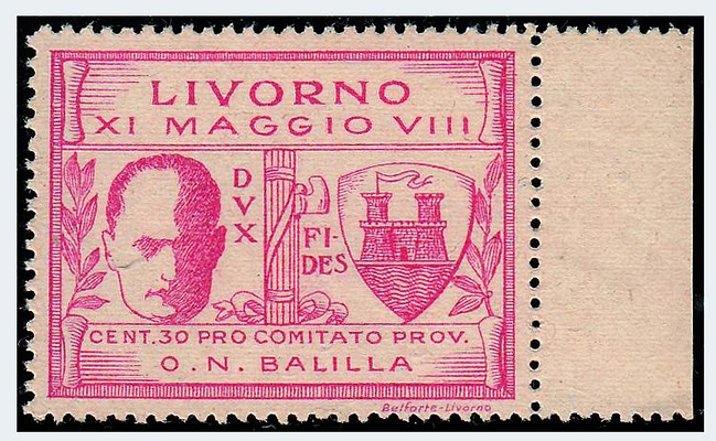 EMISSIONI LOCALI E C.L.N. - 1930, LIVORNO, Mussolini, 30 c.lilla rosa...