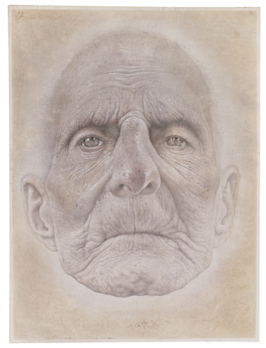 ANDREA MARTINELLI Prato 12/03/1965 Maschera, 2008 matita e pastello su carta cm. 43x32, firma in basso al centro, firma, titolo, anno e tecnica al retro, dichiarazione d'autenticità dell'artista su foto
