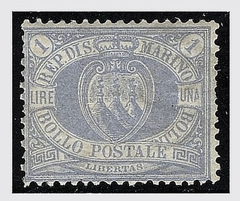 Lotto 3874 | SAN MARINO - 1894, Stemma, 1 lira oltremare (31) discreta centratura. (A....