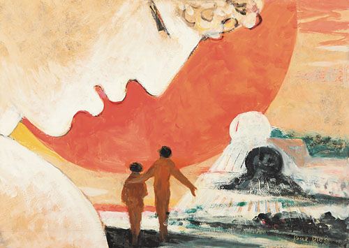 SALVATORE FIUME Comiso (Rg) 23/10/1915 - Canzo (Co) 04/06/1997 Senza titolo olio su carta da parati applicata su masonite cm. 50x70, firma in basso a destra, dichiarazione d'autenticità della figlia Laura su foto