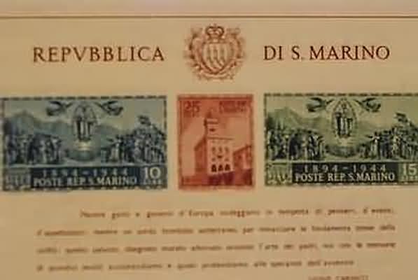 SAN MARINO - 1945, Foglietti, Cinquantenario Palazzo del Governo dentellato e...
