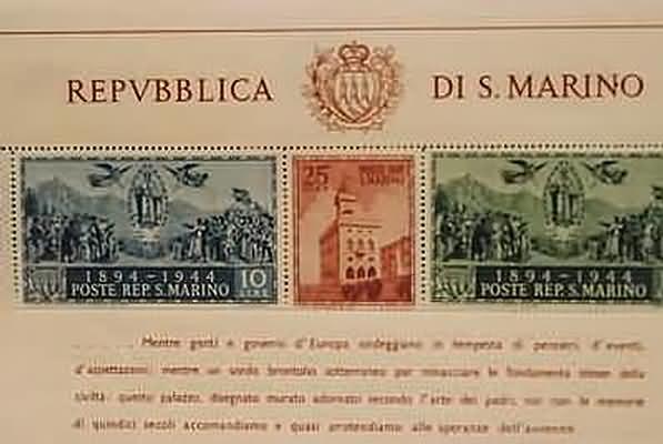 SAN MARINO - 1945, Foglietti, Cinquantenario Palazzo del Governo dentellato e...