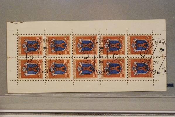 SAN MARINO - 1945, Minifogli, Stemmi 20 lire bruno oltremare (3).(USATO)
