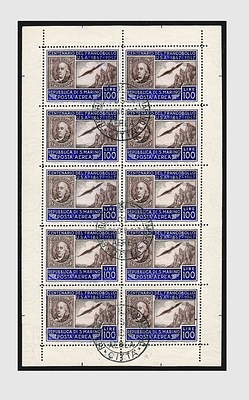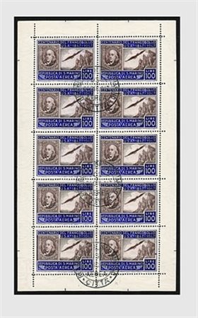 SAN MARINO - 1947, Minifoglio Centenario Francobollo Americano (8).(USATO)