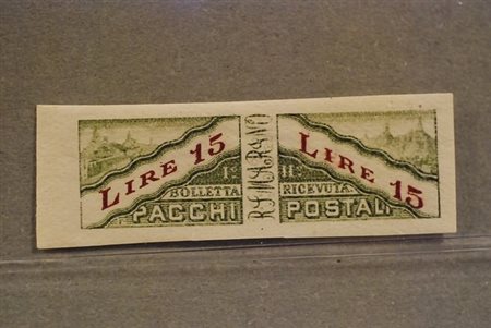 SAN MARINO - 1928, Pacchi postali, 15 lire non dentellato (15e).(GOMMA INTEGRA)
