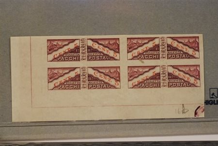 SAN MARINO - 1945, Pacchi postali, 5 c. non dentellato (16c) quartina d'angolo.(GOMMA INTEGRA)