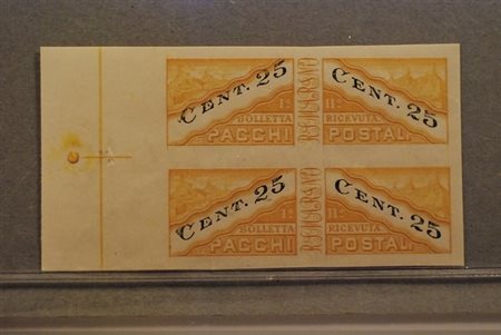 SAN MARINO - 1945, Pacchi postali, 25 c. non dentellato (19c) coppia verticale.(GOMMA INTEGRA)