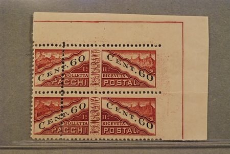 SAN MARINO - 1945, Pacchi postali, 60 c. (22) coppia verticale con la dentellatura verticale spostata nella I sezione.(GOMMA INTEGRA)
