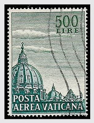VATICANO - 1958, Posta aerea, Cupolone 500 lire dent. 14 a pettine (33/I). (cert. A. Diena. Cert. Bottacchi).(USATO)
