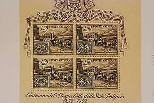 VATICANO - 1952, Foglietti, Centenario francobollo (1).(GOMMA INTEGRA)