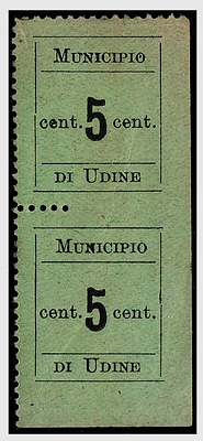 OCCUPAZIONI STRANIERE - I GUERRA - 1918, UDINE, 5 c. nero (1) coppia verticale non dentellata a destra, in basso e con dentellatura parziale al centro.(GOMMA ORIGINALE)