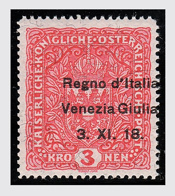 TERRE REDENTE - 1918, VENEZIA GIULIA, 3 k. con soprastampa fortemente...