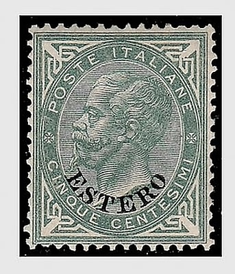 UFFICI POSTALI ALL'ESTERO/LEVANTE - 1874, EMISSIONI GENERALI, soprastampati "ESTERO" 7 valori (1,2,3,6/9). (Cert. Chiavarello per il 5 c.).(GOMMA INTEGRA)