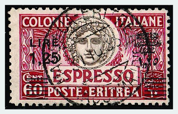 ERITREA - 1935, Espressi, lire 1,25 (8) ben annullato. (Cert. Raybaudi).(USATO)