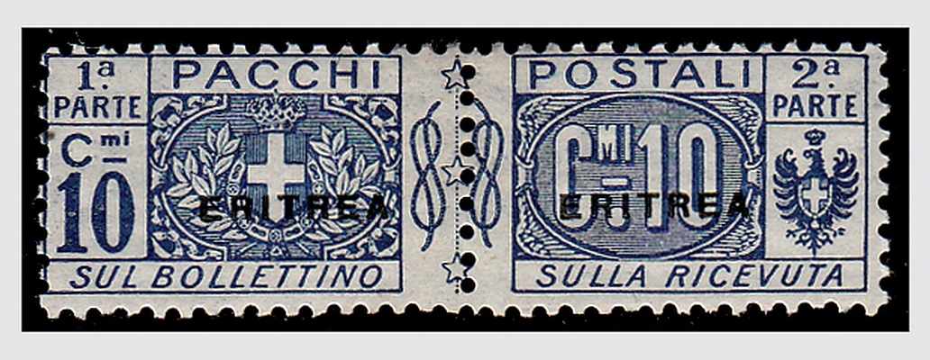 ERITREA - 1916, Pacchi postali, 8 valori cpl. (1/8). Il 10 c. con cert. E. Diena.(GOMMA INTEGRA)